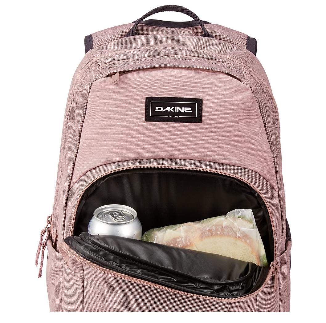 Vernieuwde versie van de Campus rugzak serie van Dakine, al jaren het best verkochte model rugzak van Dakine. Deze populariteit dankt de rugzak vooral aan de praktische elementen en de ruimte in de rugzak. De Campus M is de kleinere versie van de Campus L, maar wel gewoon voorzien van een 15 inch laptopvak. Deze rugtas is voorzien van 2 in lengte verstelbare, gewatteerde schouderbanden en een tophandle met een gevoerd vak, voor bijvoorbeeld je zonnebril. Het ruime compartiment biedt ruimte aan een 15" laptop. Daarnaast bevat de rugzak een tweede ritscompartiment, De rugtas is voorzien van twee zijvakken voor een waterfles of paraplu. De rugzak is voorzien van een geïsoleerd voorvak. Dit koelvak zorgt ervoor dat je eten of drinken koel blijft. Comfortabel te dragen dankzij de s-vormige schouderbanden met borstriem, die verstelbaar zijn.
