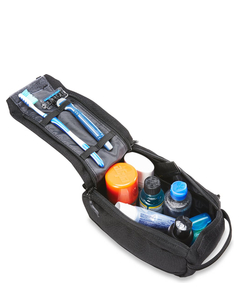 Handige ruime toilettas uit de Travel serie van Dakine. De toilettas biedt voldoende plaats aan alle noodzakelijke verzorgingsproducten op reis. In de verschillende met rits afsluitbare vakken in de toilettas kan je alles kwijt. De tas beschikt over een afwasbare nylonvoering, indien dus iets uitloopt, kan de toilettas probleemloos gewassen worden. De Dakine Groomer kan zowel aan een lus gedragen of opgehangen worden.